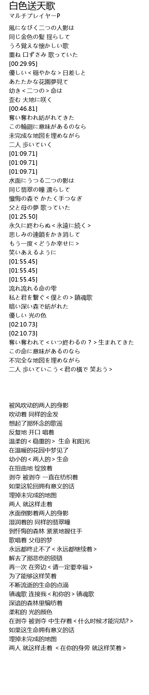 | [01:59.65] | 私と君を繋ぐ<僕との>鎮魂歌 |