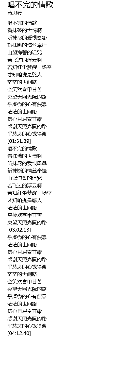 | [02:09.67] | 唱不完的情歌 |