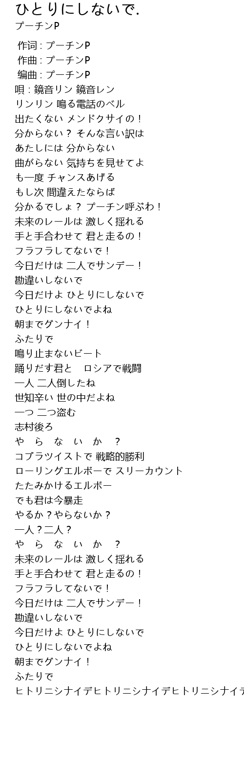 | [03:44.869] | ヒトリニシナイデヒトリニシナイデヒトリニシナイデ... |