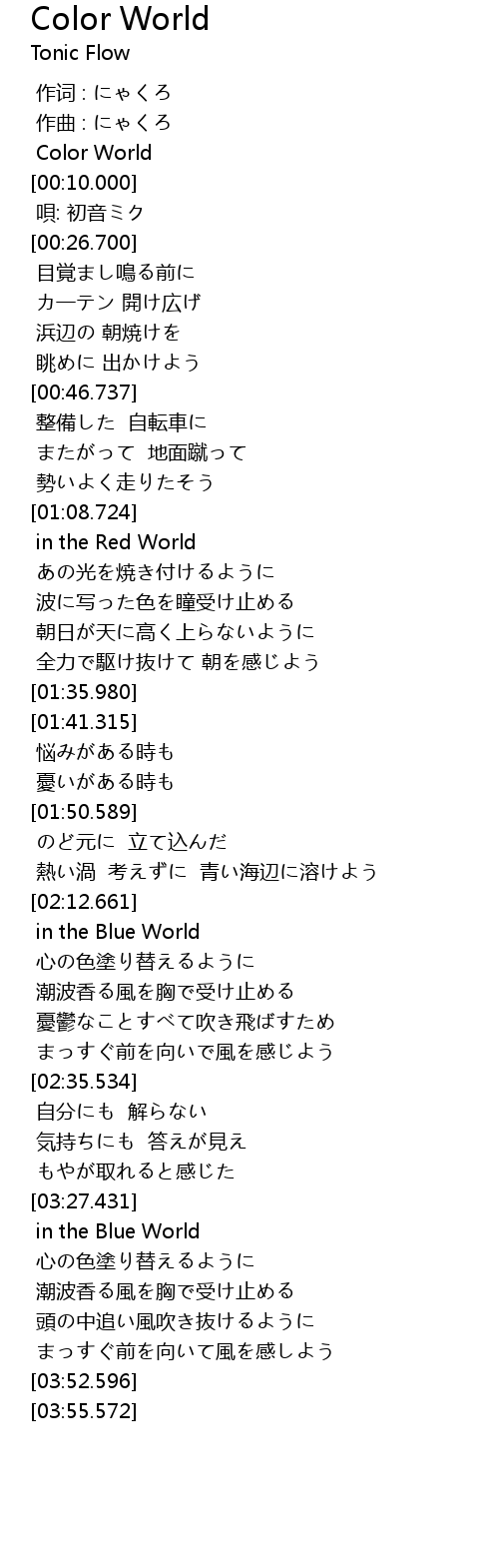 | [03:32.884] | 潮波香る風を胸で受け止める |