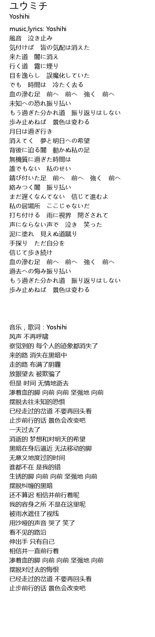 | [02:36.81] | 錆び付いた足 前へ 前へ 強く 前へ |