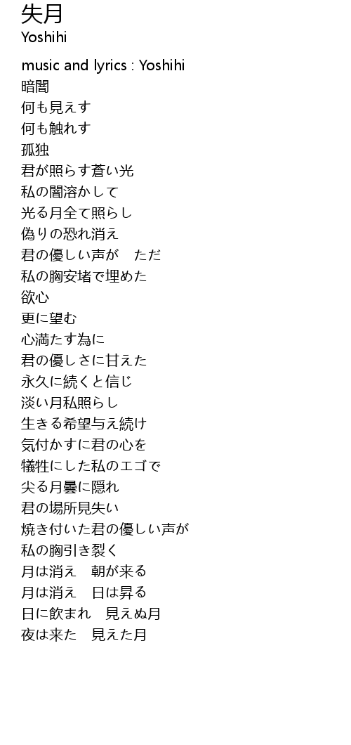 | [03:25.63] | 日に飲まれ 見えぬ月 |