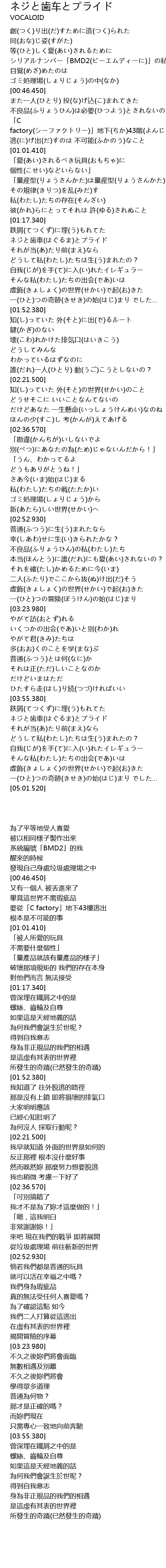 | [01:22.350] | ネジと歯車(はぐるま)とプライド |