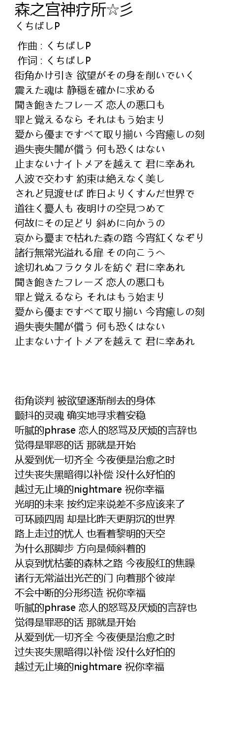 | [02:15.68] | 途切れぬフラクタルを紡ぐ 君に幸あれ |