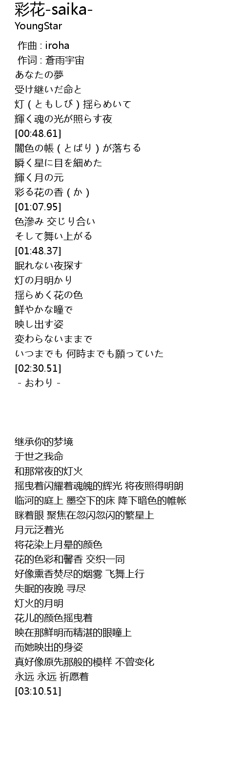 | Song | 彩花-saika- |