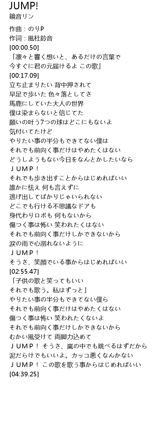 | [04:30.05] | JUMP! この歌を歌う事からはじめればいい |