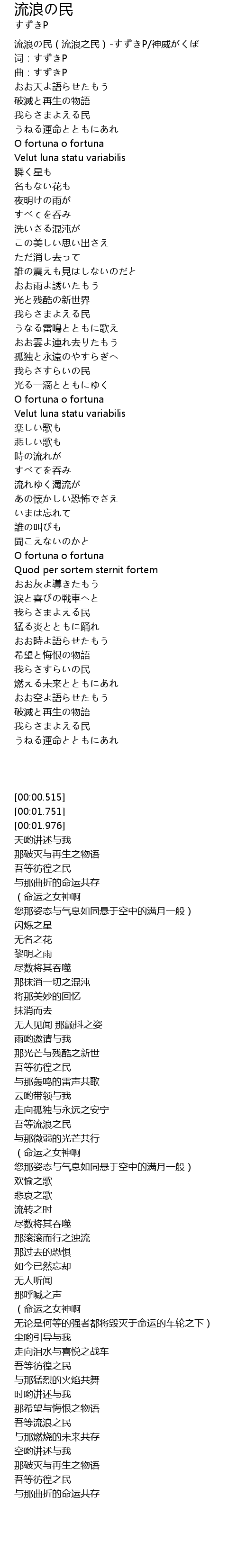 | [00:00.515] | 流浪の民(流浪之民)-すずきP/神威がくぽ |