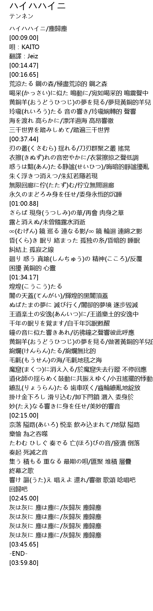 | [00:02.71] | ハイハハイニ/塵歸塵 |