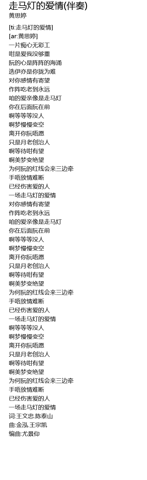| [04:04.539] | 曲:金泓.王宗凯 |