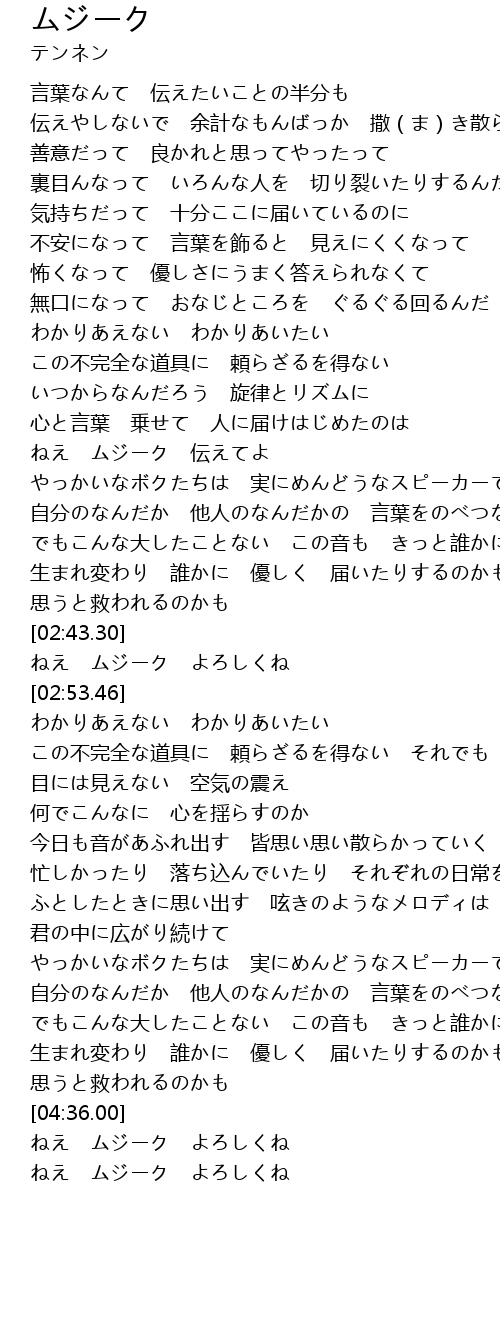 | [02:07.81] | ねえ ムジーク 伝えてよ |