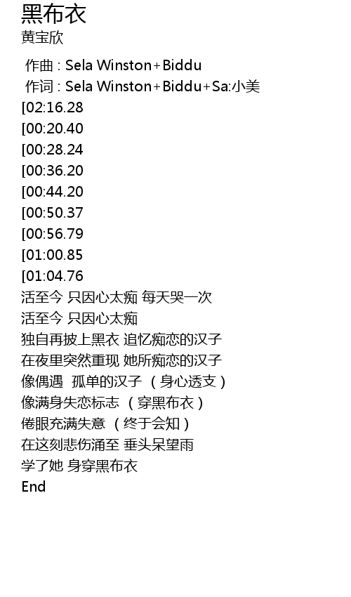 | [03:15.17] | 学了她 身穿黑布衣 |