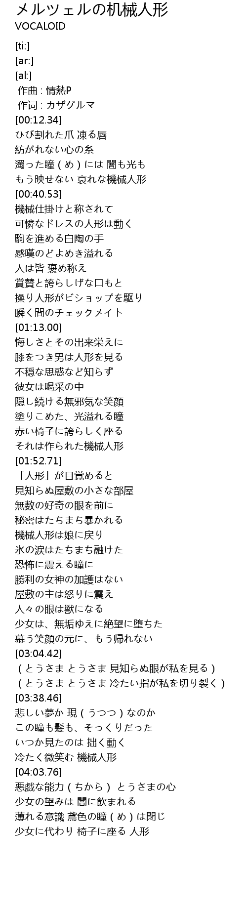 | [03:59.25] | 冷たく微笑む 機械人形 |