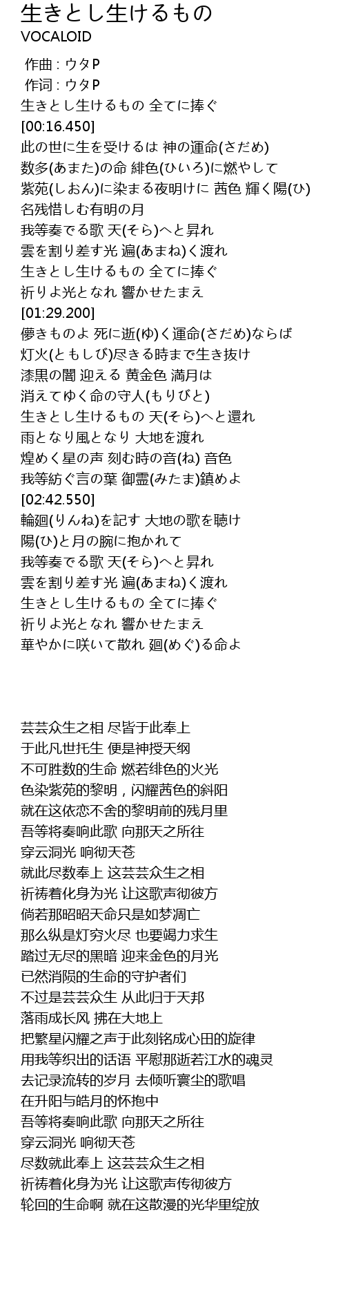 | [01:13.440] | 生きとし生けるもの 全てに捧ぐ |