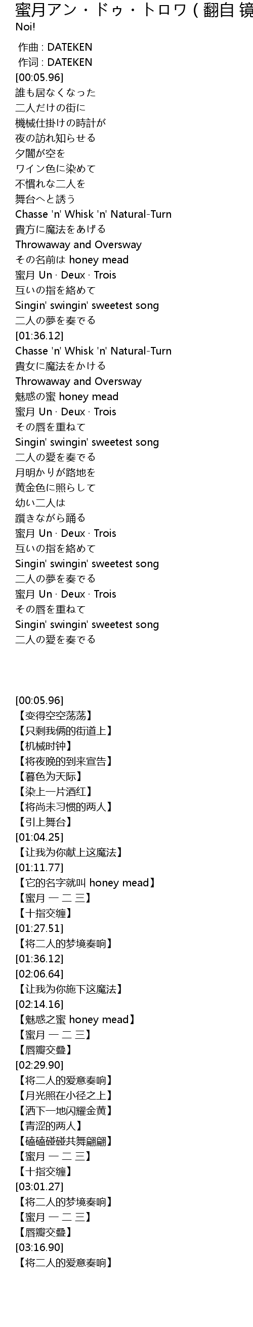 | [02:53.61] | 蜜月 Un · Deux · Trois |