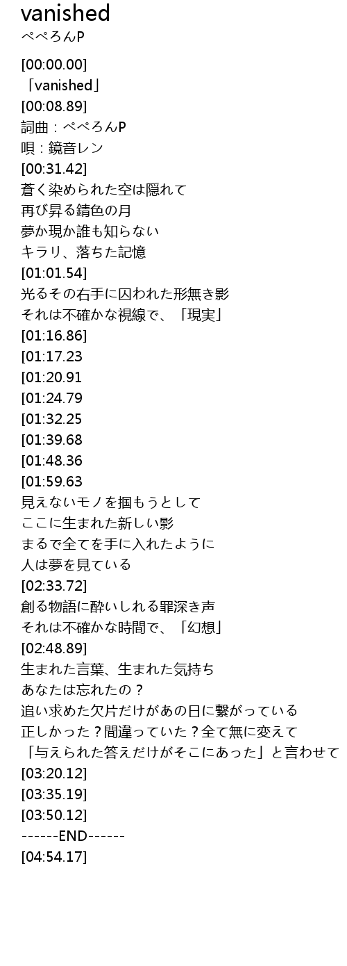 | [00:16.46] | 詞曲:ぺぺろんP |