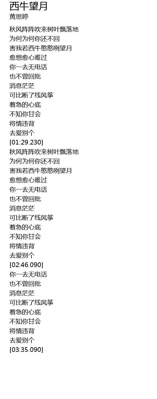 | [00:38.330] | 害我若西牛憨憨咧望月 |