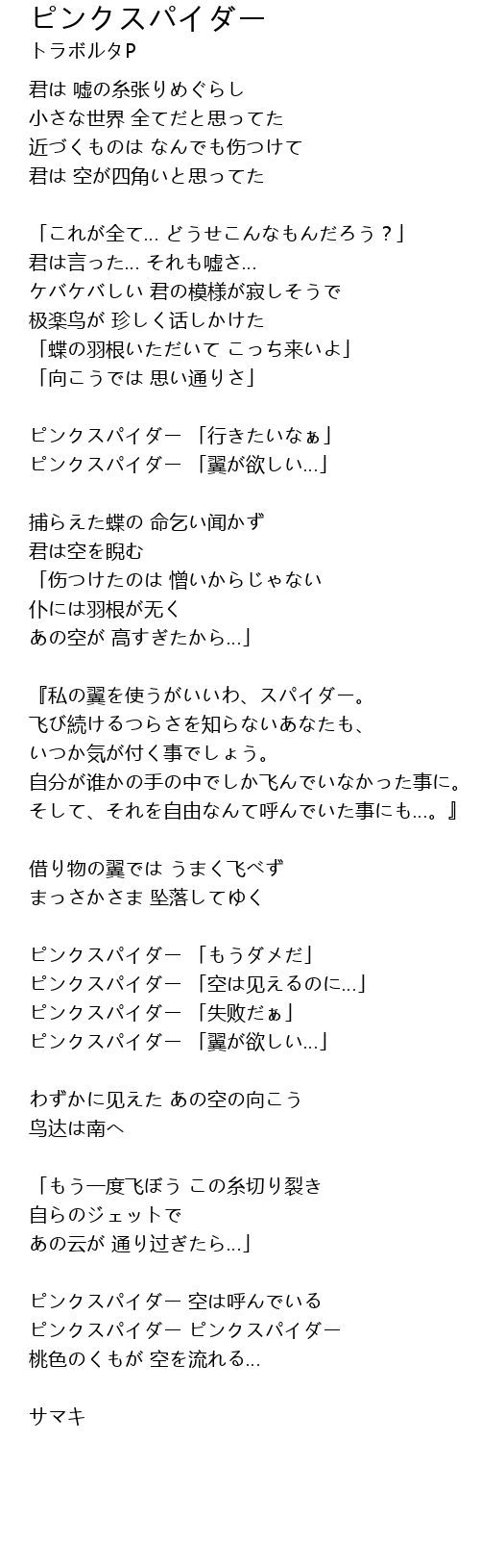 | Song | ピンクスパイダー |
