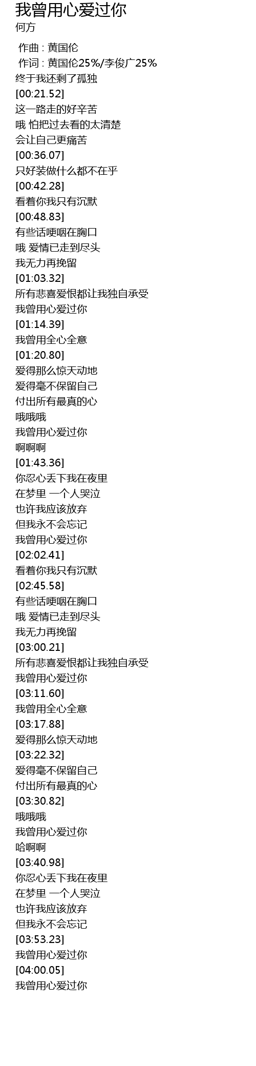 | [01:15.97] | wǒ céng yòng quán xīn quán yì |