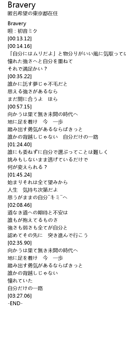 | [00:00.95] | Bravery |