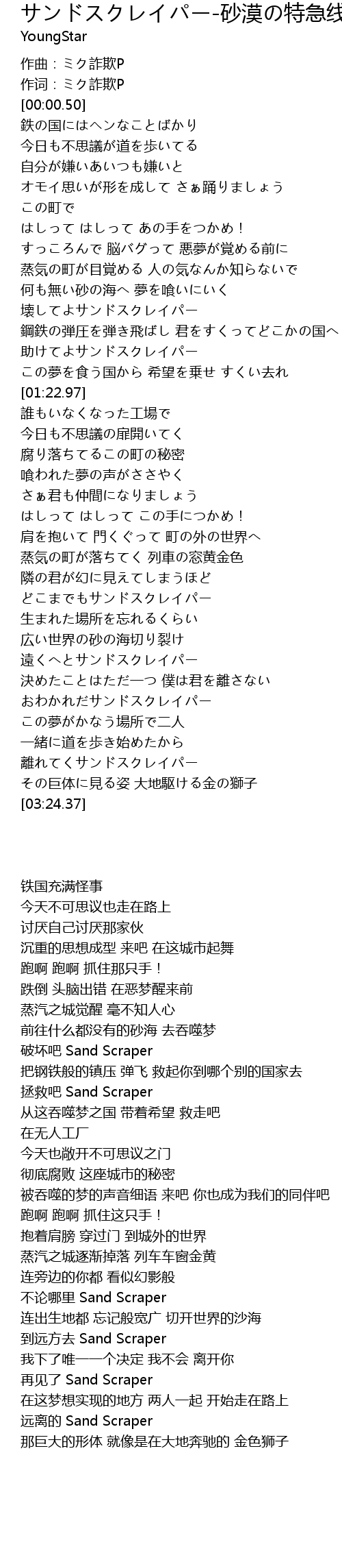 | [02:53.99] | 遠くへとサンドスクレイパー |