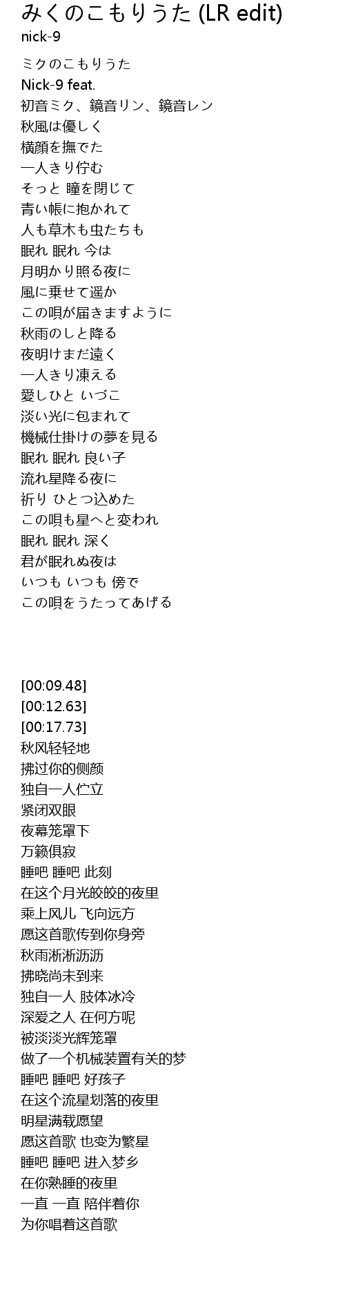 | [00:17.73] | 初音ミク、鏡音リン、鏡音レン |