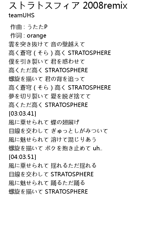 | [02:28.97] | 高くただ高く STRATOSPHERE |