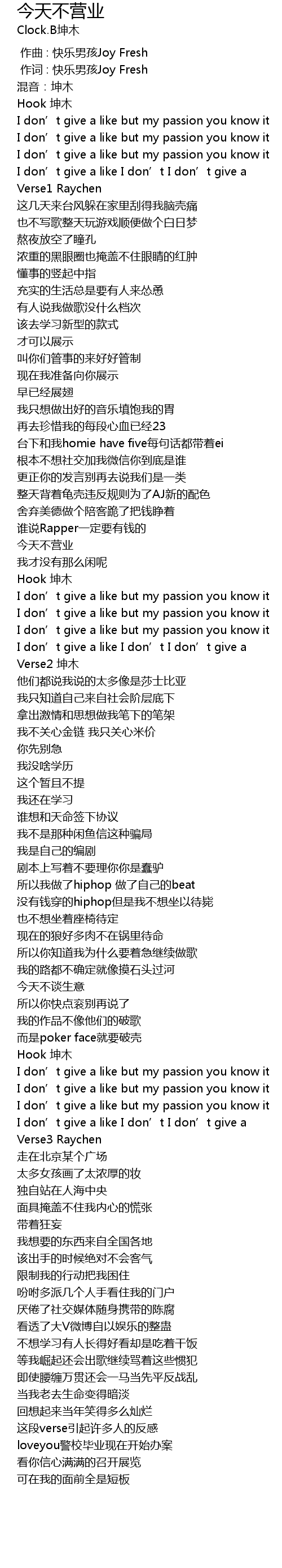 | [01:05.776] | 今天不营业 |