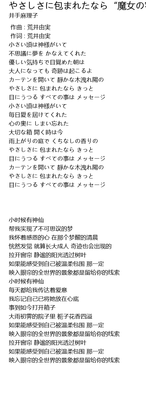 | Song | やさしさに包まれたなら“魔女の宅急便”より |