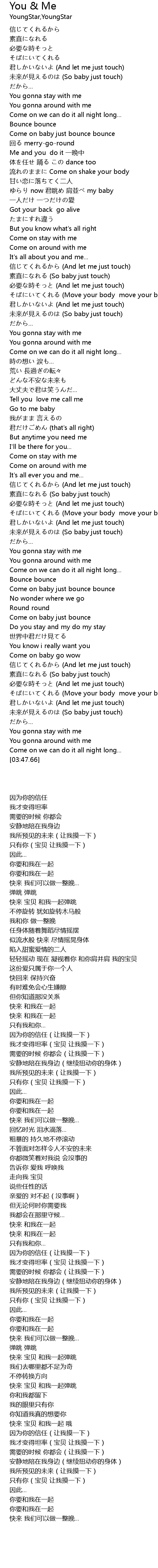 | [00:33.66] | Me and you do it yī wǎn zhōng |
