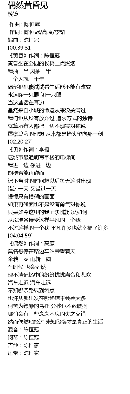 | [00:41.01] | 《黄昏》作词:陈恒冠 |