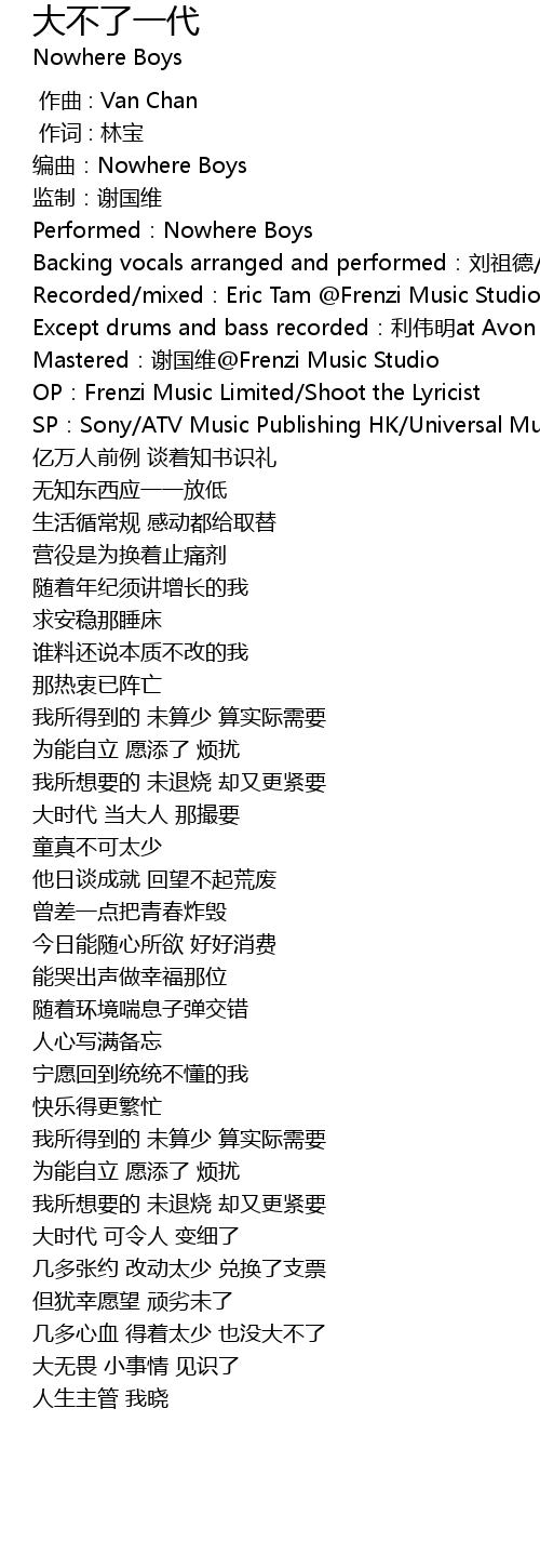 | [00:01.66] | Recorded mixed: Eric Tam Frenzi Music Studio |