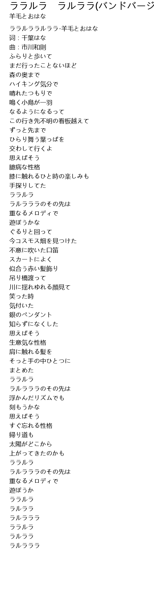 | [00:00.98] | ララルララルララ-羊毛とおはな |