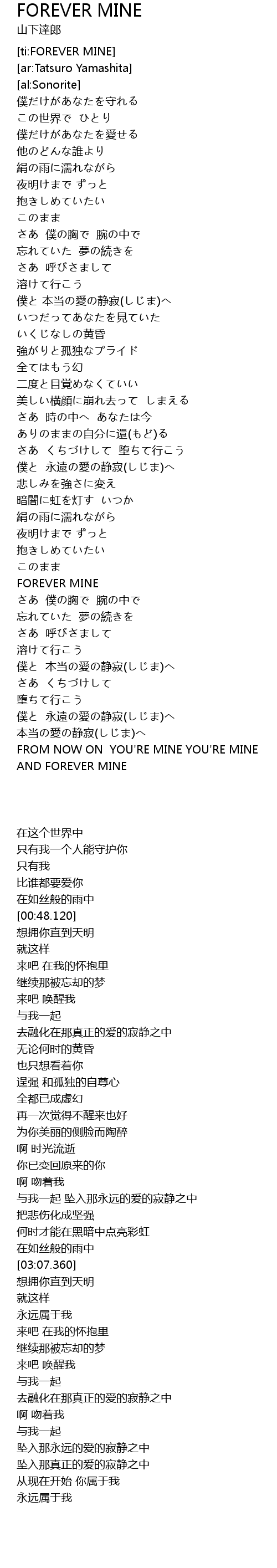 | [04:13.390] | FROM NOW ON YOU' RE MINE YOU' RE MINE |