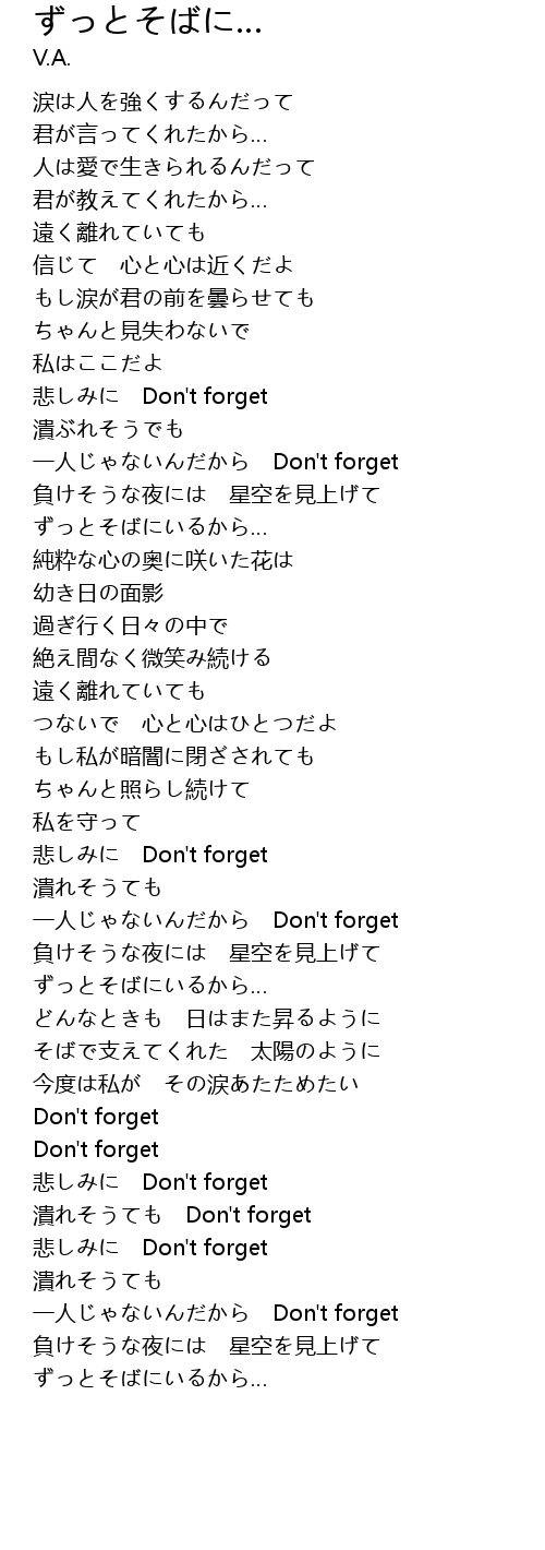 | [02:29.29] | 一人じゃないんだから Don't forget |