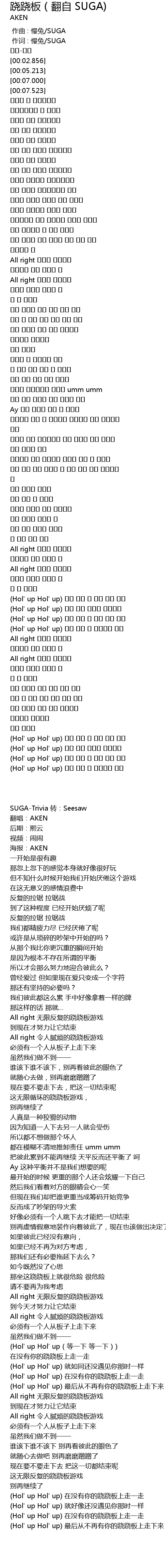 | [00:00.433] | 作词 : 慢兔/SUGA |