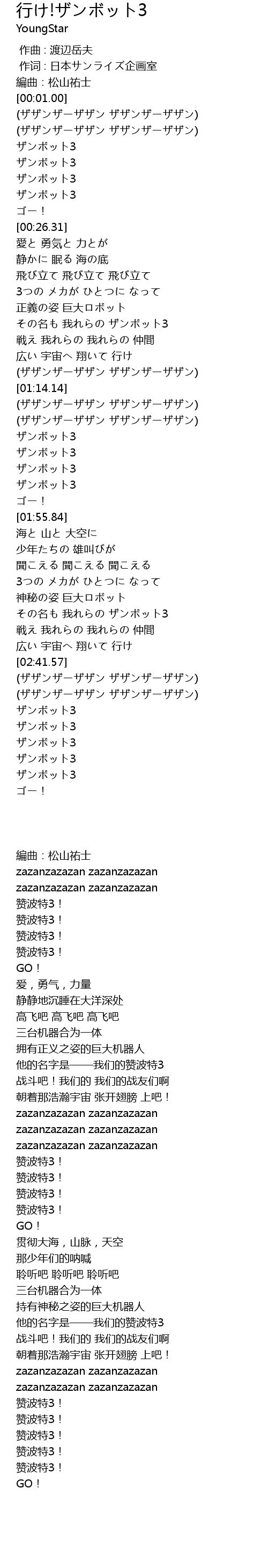 | [02:21.01] | その名も 我れらの ザンボット3 |