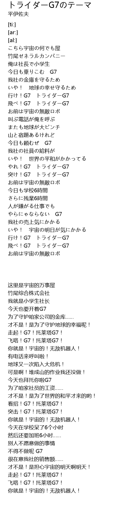 | [01:50.33] | 突け!G7 トライダーG7 |