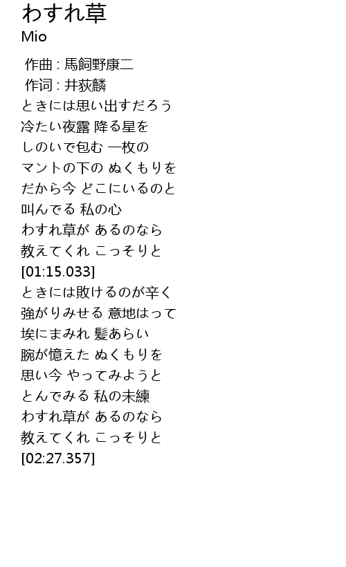 | [01:43.220] | 埃にまみれ 髪あらい |