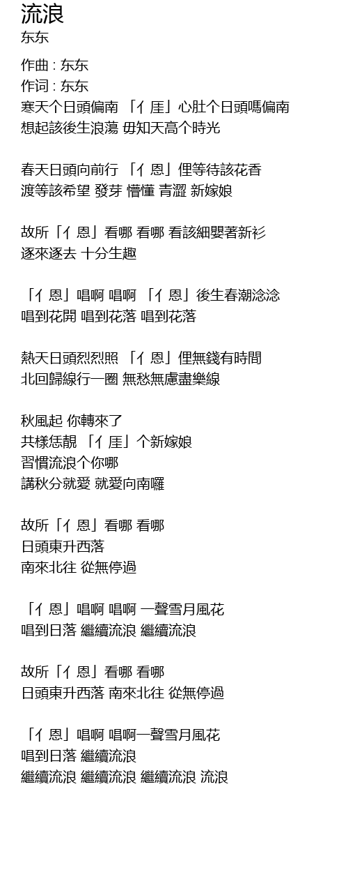 | 寒天个日頭偏南 「亻厓」心肚个日頭嗎偏南 | |
