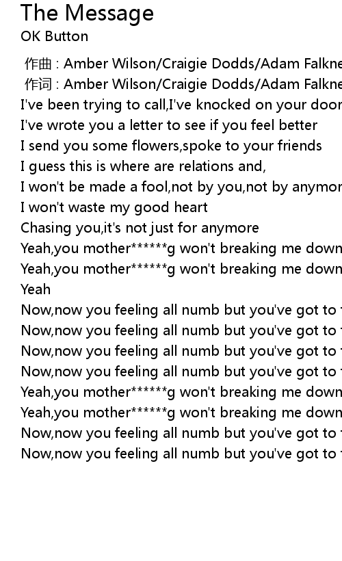 | [01:22.20] | Yeah,you mother******g won't breaking me down |