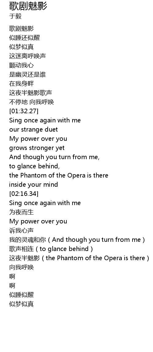 | [03:04.32] | zhe ye ban mei ying the Phantom of the Opera is there |