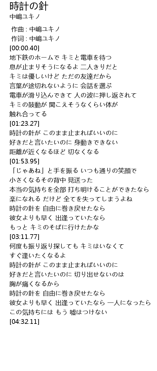 | [03:35.41] | 時計の針が このまま止まればいいのに |
