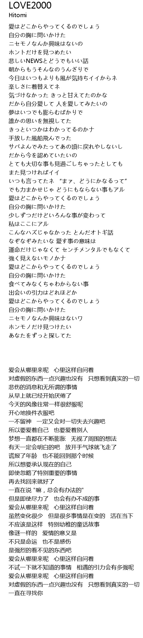 | [00:22.19] | 愛はどこからやってくるのでしょう 自分の胸に問いかけた |