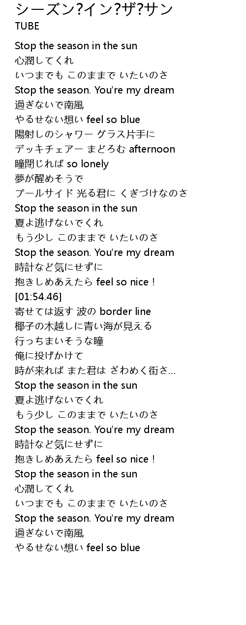 | [00:15.13] | Stop the season in the sun |