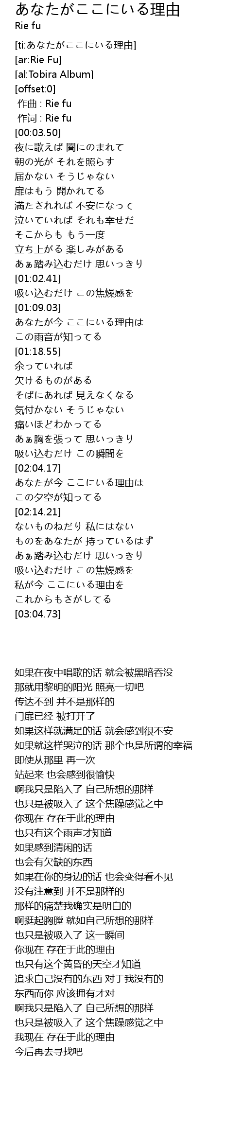 [ti:あなたがここにいる理由] |
