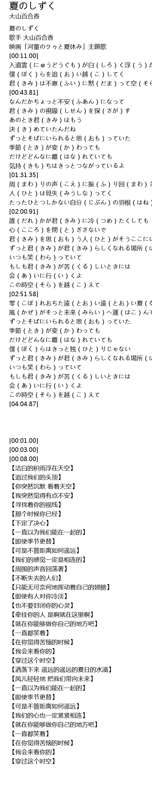 | [00:08.00] | 映画「河童のクゥと夏休み」主題歌 |