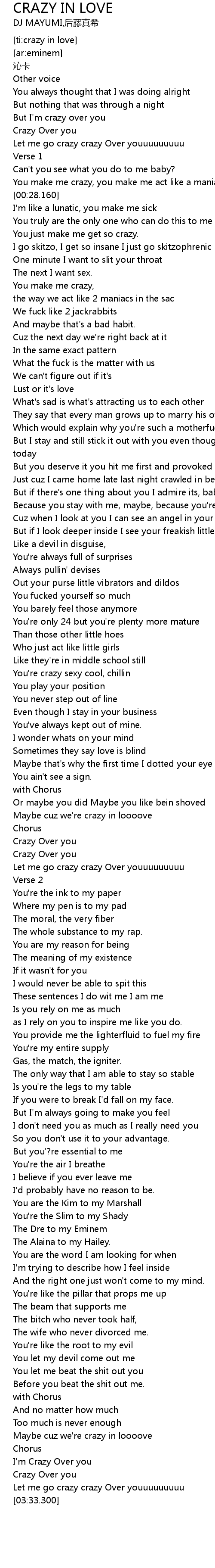 | [02:05.660] | Let me go crazy crazy Over youuuuuuuuu |