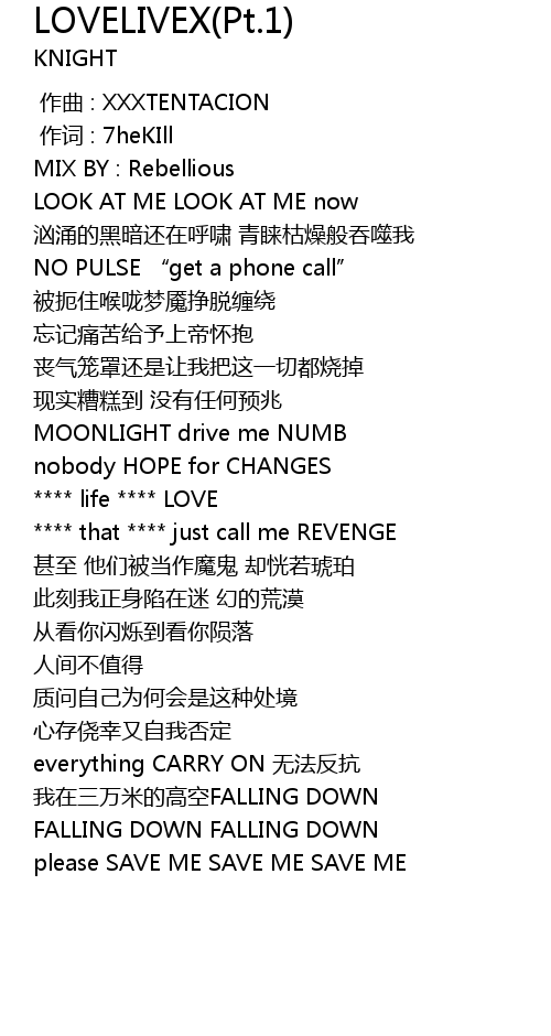 | [00:00.000] | 作曲 : XXXTENTACION |