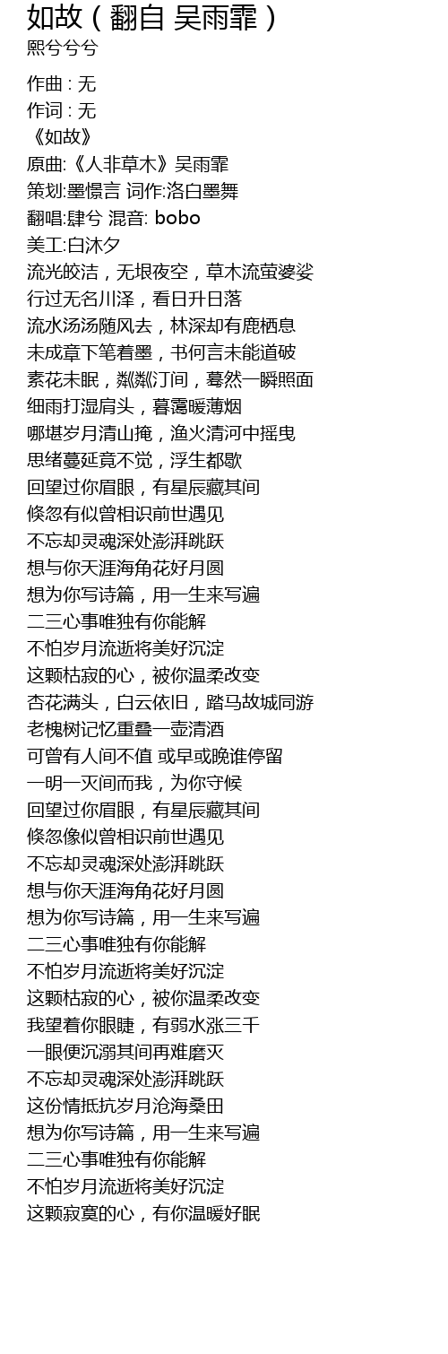 | Album | 熙兮兮兮翻唱不定期更新 |