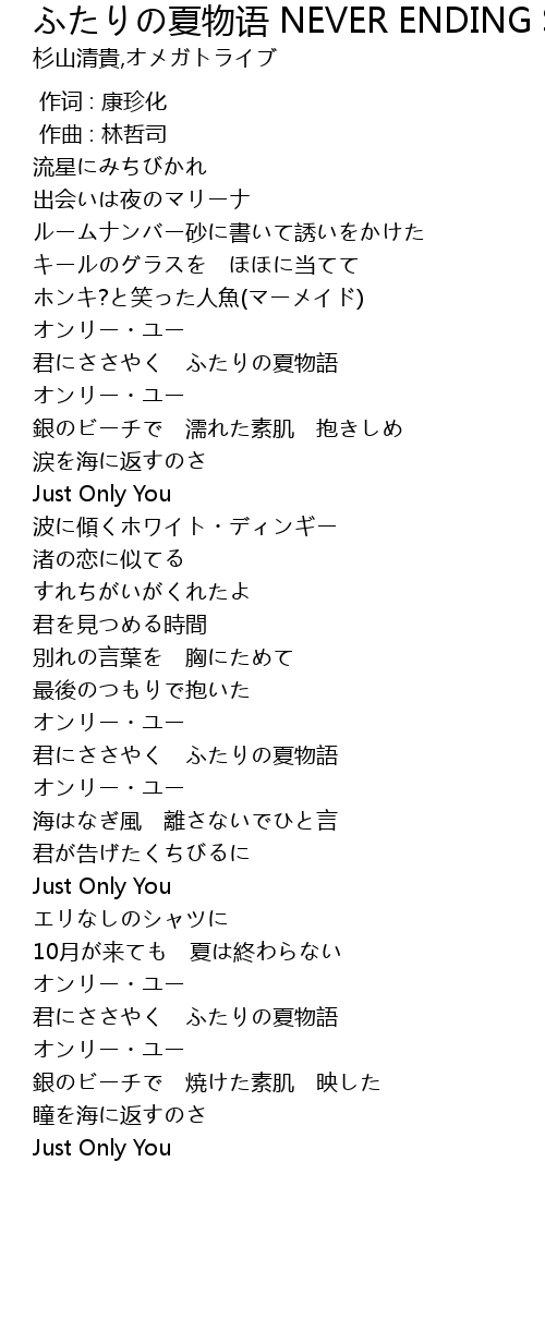 | [02:23.660] | 君にささやく ふたりの夏物語 |